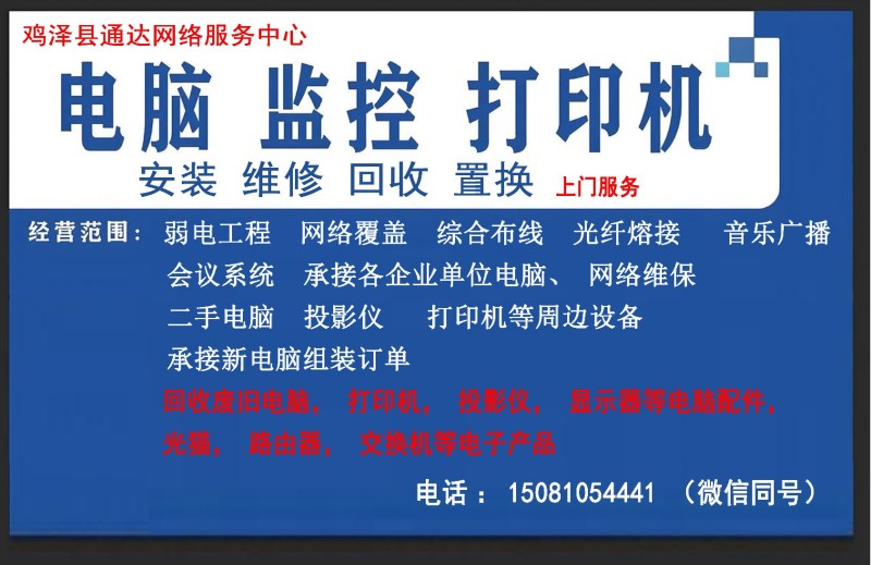 高价回收废旧电脑,显示器,电脑配件,办公设备等电子产品承接安防监控,门禁,对讲,报警等智能化弱电施工工程安装监控