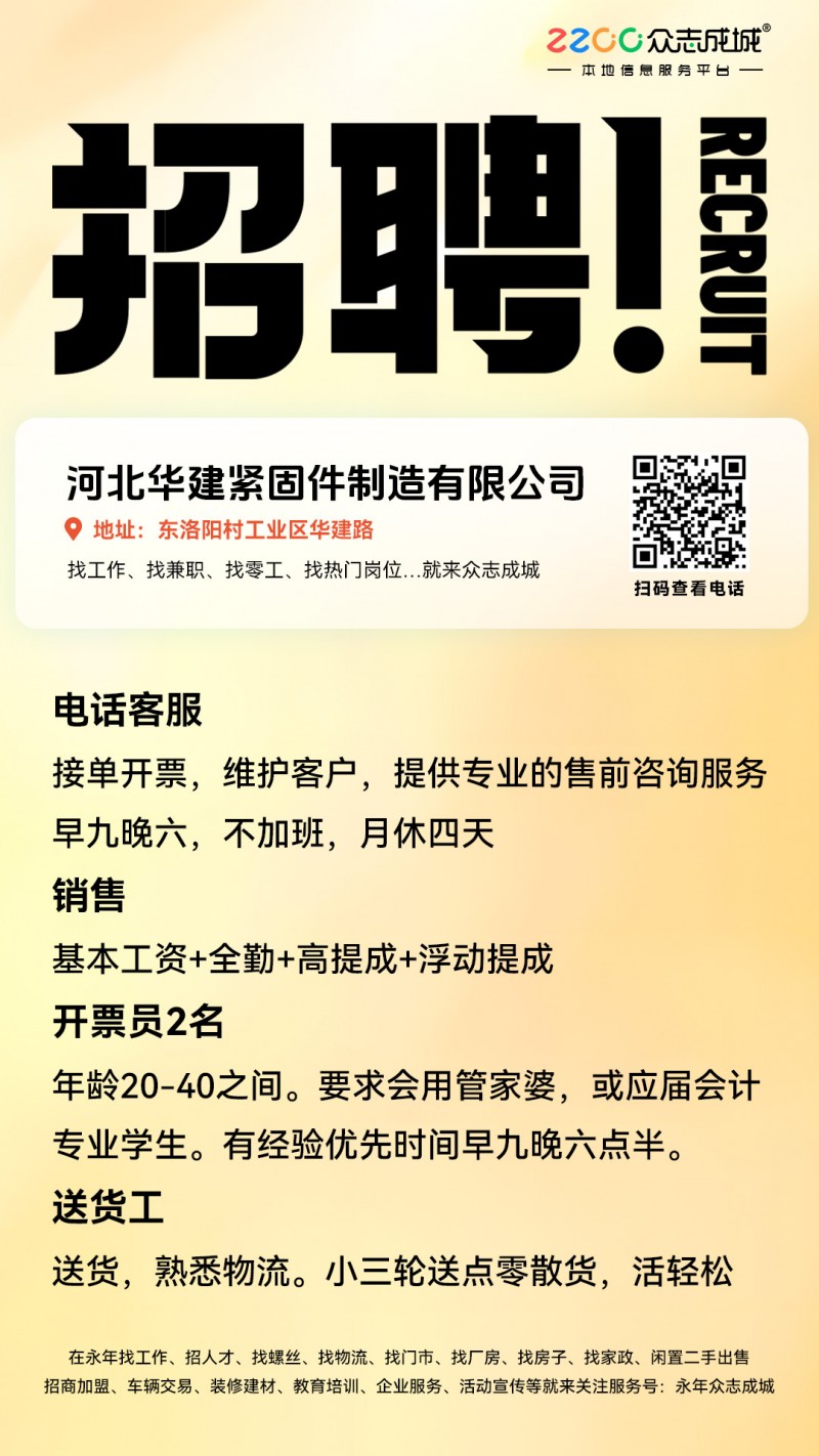 招聘:普工/技工,送货工