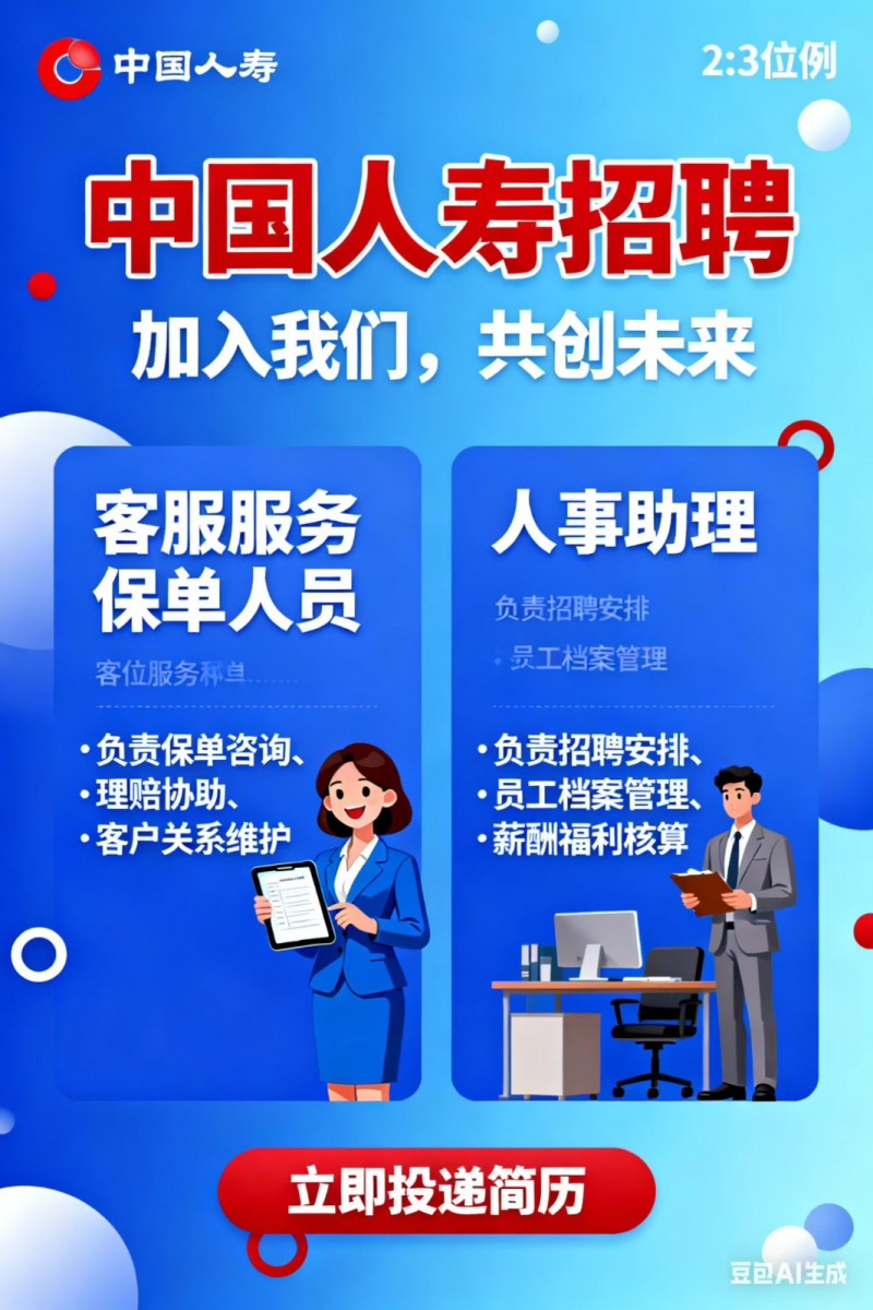 中国人寿招募:人事助理每天5个小时、周末双休、有人带,带薪培训日常负责保单咨询信息核对工作内容清晰不复杂,用你的细心回应