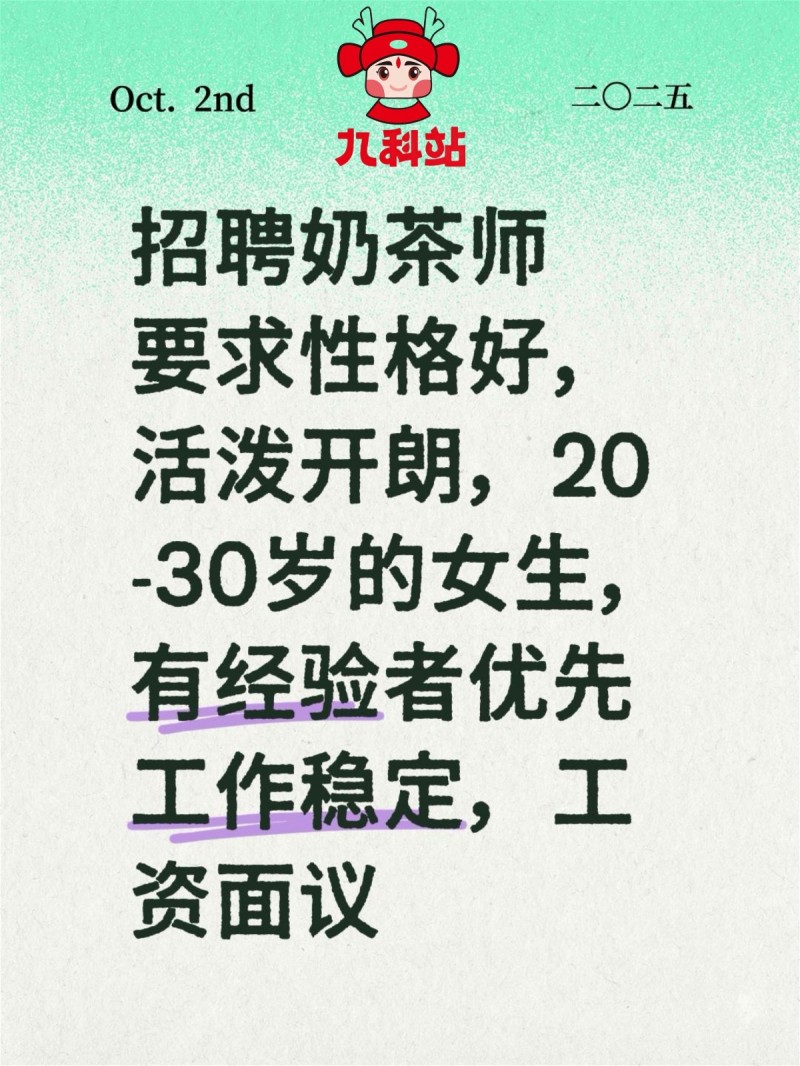 一天工作8个小时,分早中晚班,主要就做做奶茶,保持店内卫生干净整洁,刚开的新店也不忙,工作轻松简单