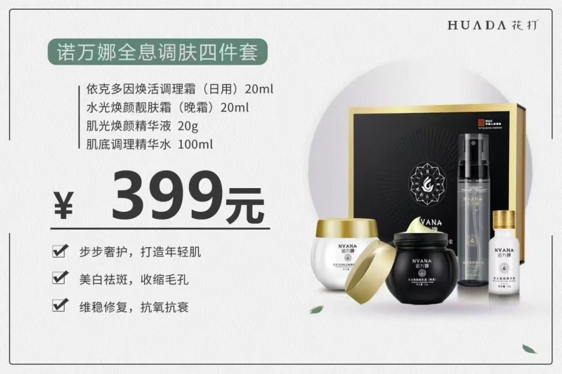 诺万娜全息疗肤调肤四件套!如果你的脸上有各种斑,痘痘,红血丝,大油田,敏感肌,大干皮,皮肤粗糙的,暗沉无光的,松垮垂的!走了很多弯路踩了很多坑,都没有得到解决的,想要皮肤白透亮细嫩滑的。都可以找我,诺万娜调肤四件套综合性的360度全方位的给你调理皮肤!给你打造灯泡肌素颜肌,只要399元一套四件套!你值得拥有!