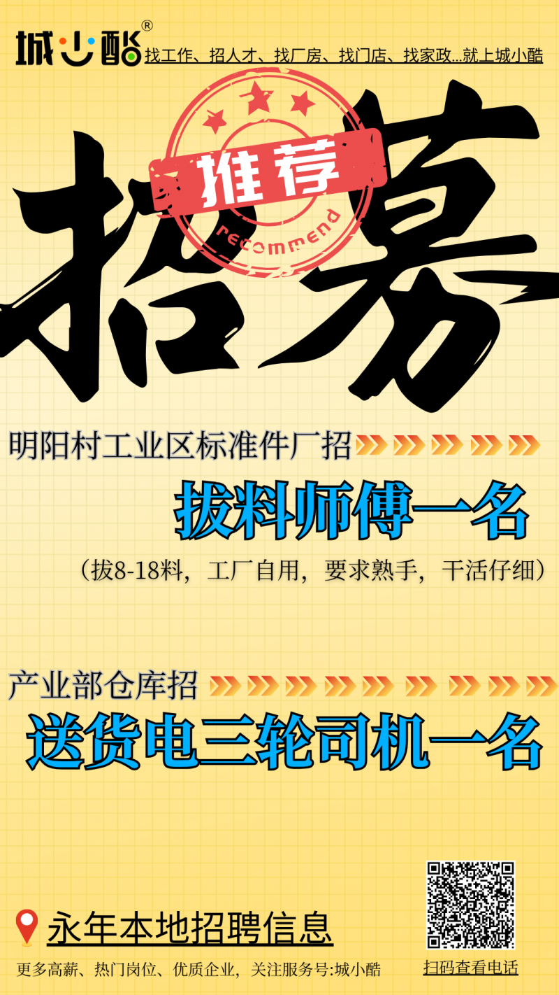明阳村工业区标准件厂招拔料师傅一名,拔8-18料,工厂自用,要求熟手,干活仔细