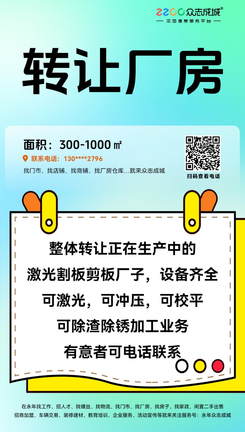 整体转让正在生产中的激光割板剪板厂,设备齐全,有意者电话联系