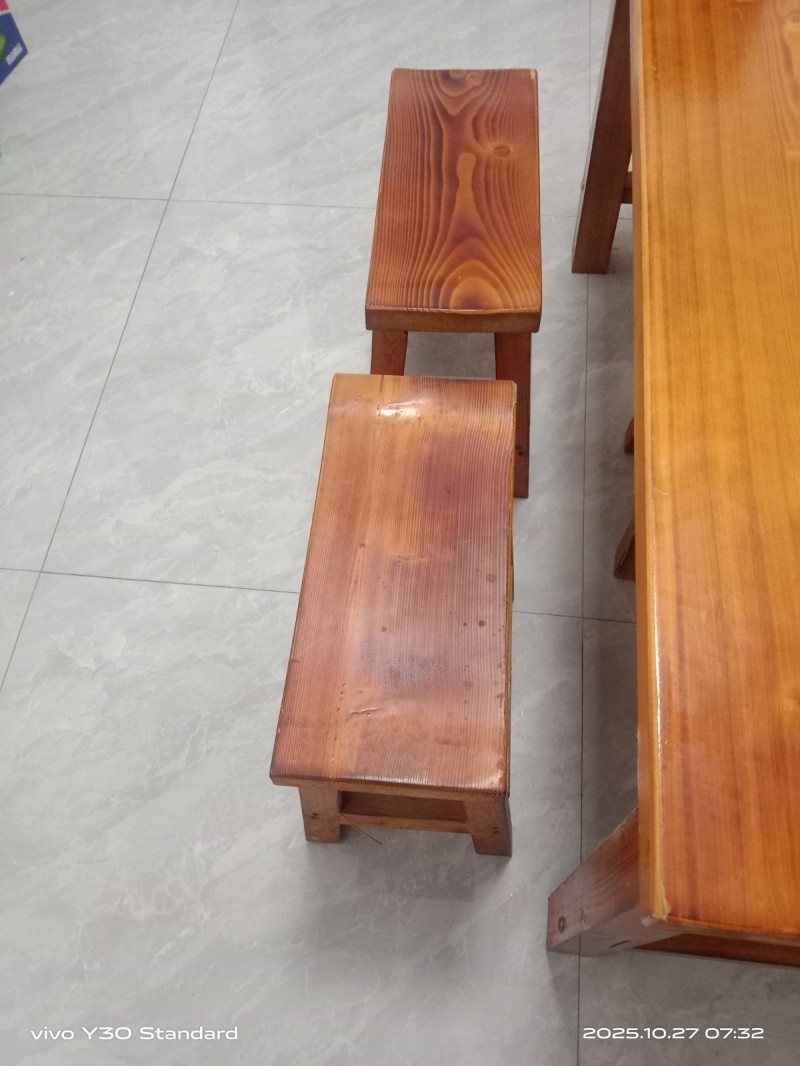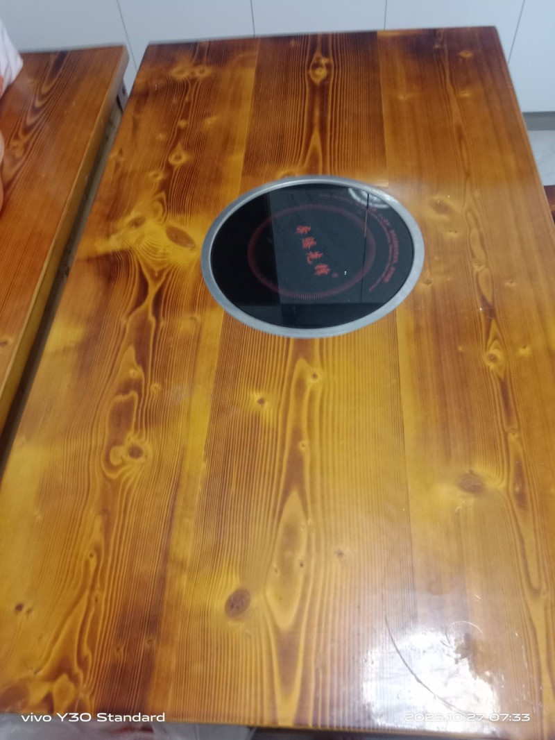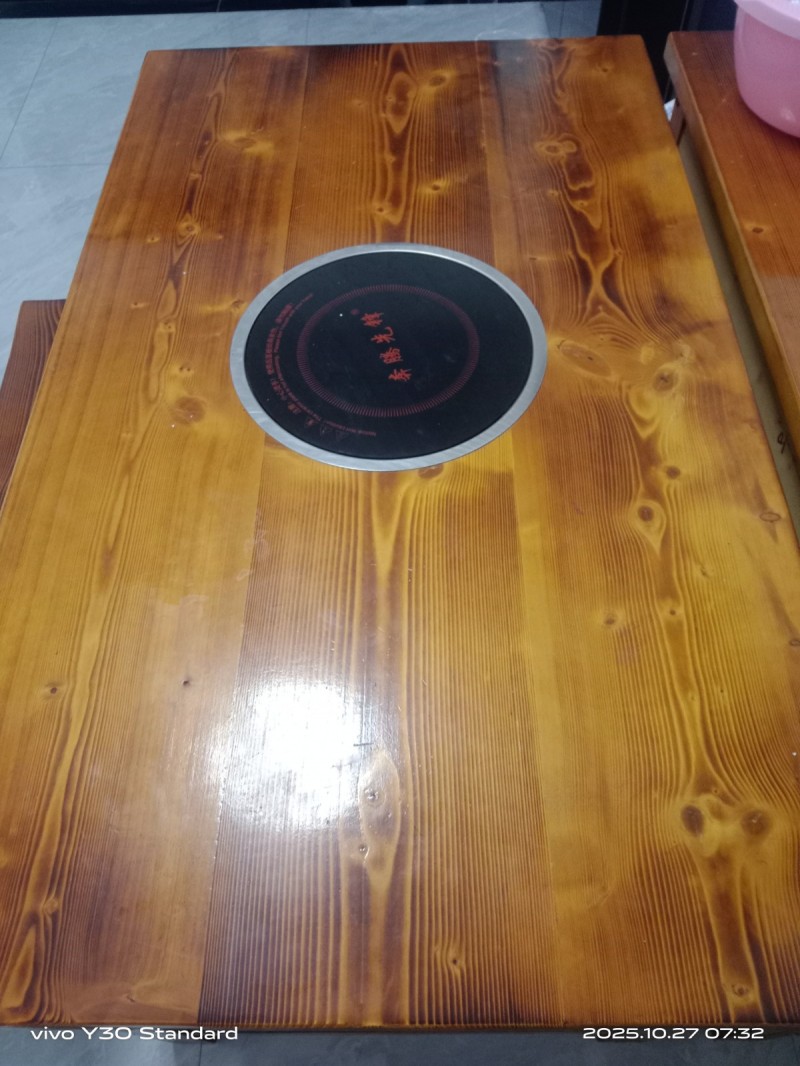 出售火锅桌子,带一条长凳子,两个短凳子,九成新,几乎没有用过