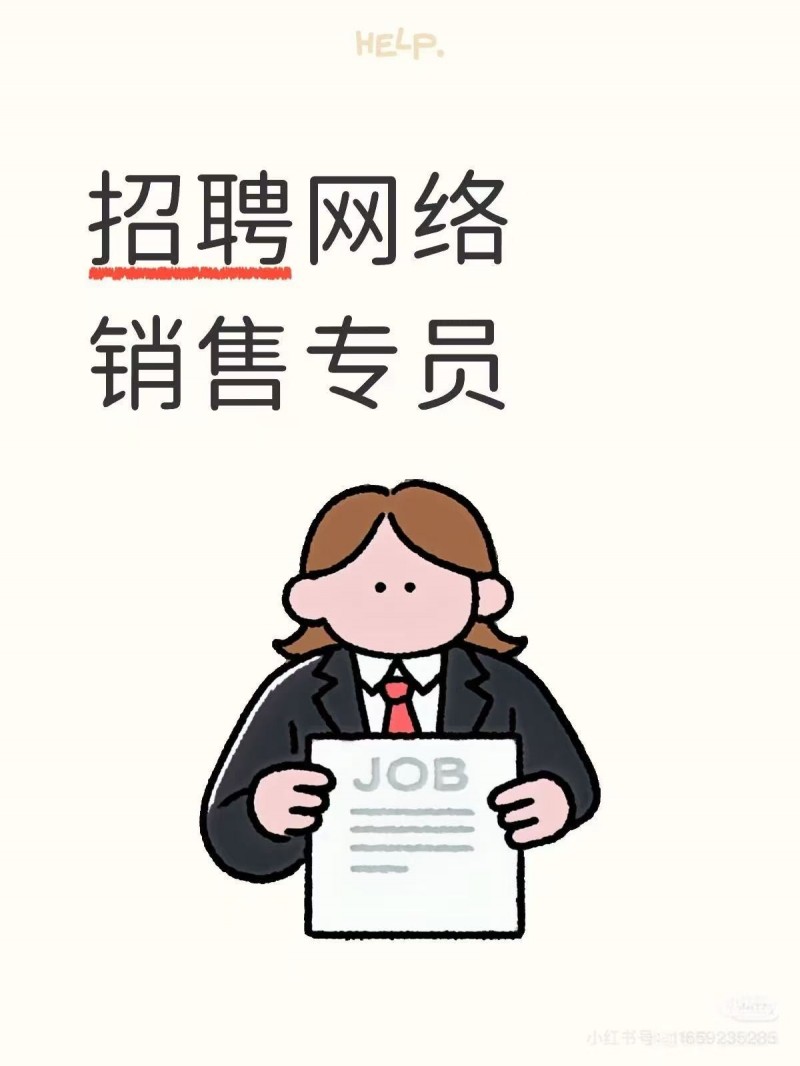 招聘:销售 网络销售底薪4000+高提成+公休电话量无要求、早九晚六、每周日公休、老板年轻事少、同事好相处