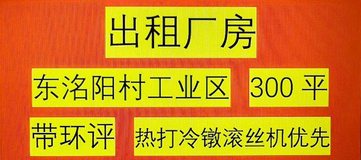 出租东明杨村工业区厂房,300平,带环评,水电齐全,交通便利,适合热打、冷墩、滚丝机等,有意者电话联系。