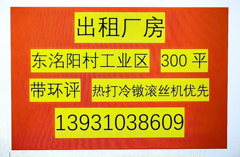 出租东明杨村工业区厂房,300平,带环评,水电齐全,交通便利,适合热打、冷墩、滚丝机等,有意者电话联系。