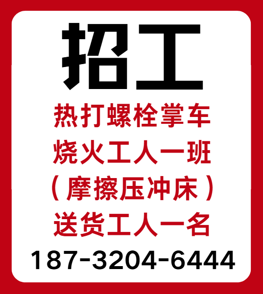 招工 热打螺栓掌车烧火工人一班 (摩擦压冲床)