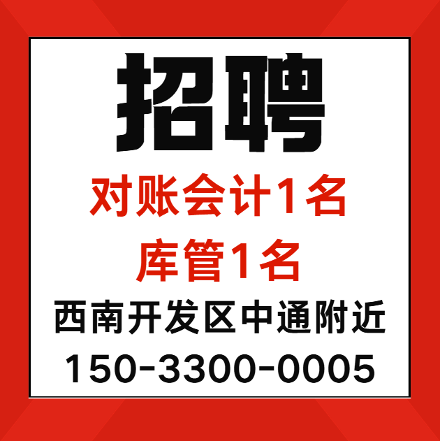 招聘:对账会计1名招聘:开票会计1名。地址:西南开发区中通附近