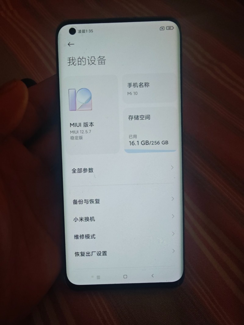 小米10完美解锁机,8+256,去年换的品胜电池,屏幕最上方一毫米处又断触,使用基本不影响。其他无问题。600裸机
