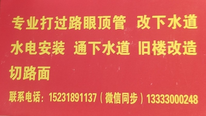 专业打过路眼顶管改下水道