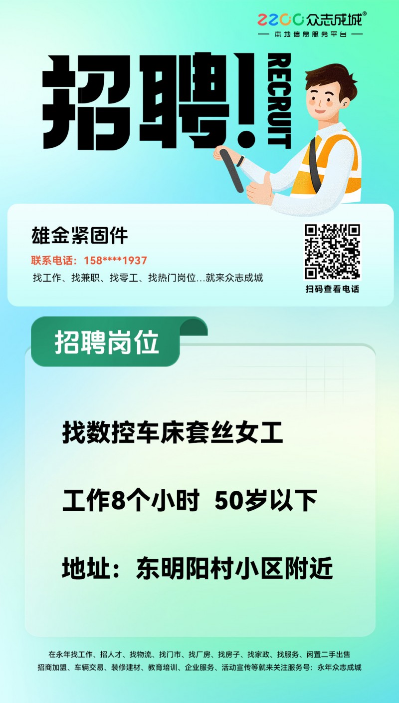 招聘职位:车床工,攻丝工,数控 数控车床套丝女工