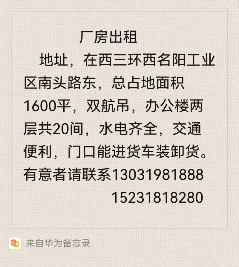 厂房出租,总占地面积1600平