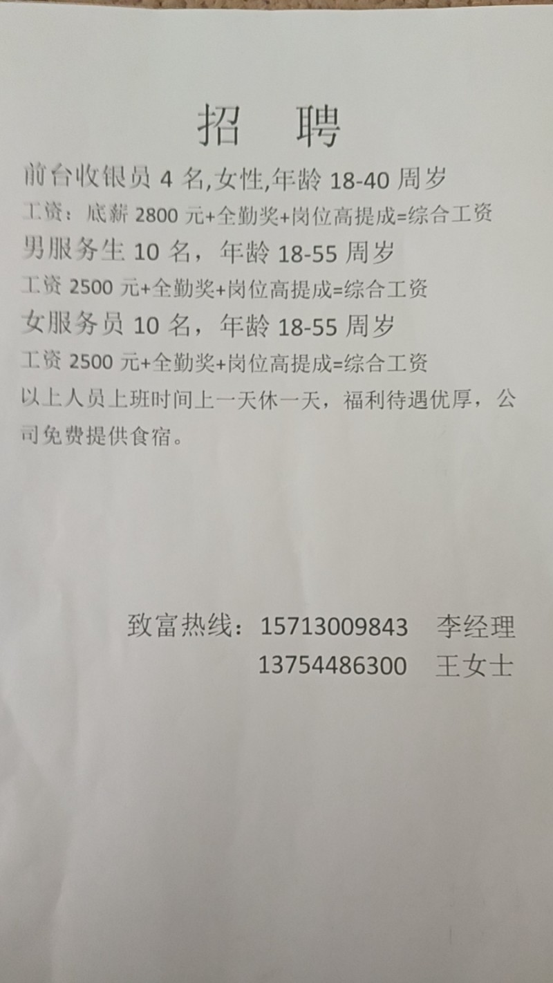 招聘:服务员