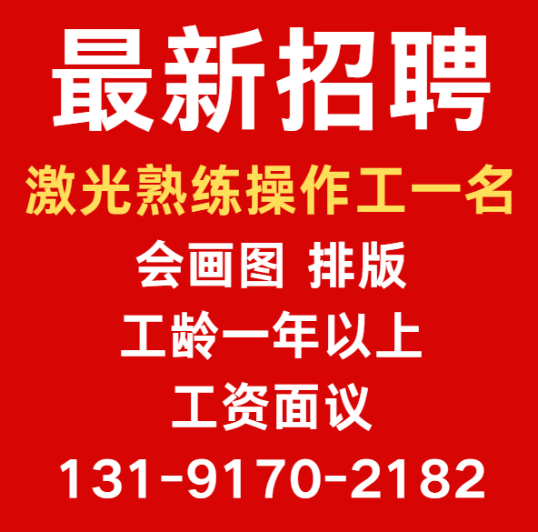 招激光熟练操作工一名 会画图 排版 工龄一年以上 工资面议