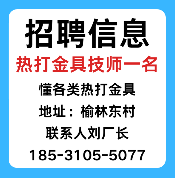 招聘热打金具技师一名懂各类热打金具地址:榆林东村