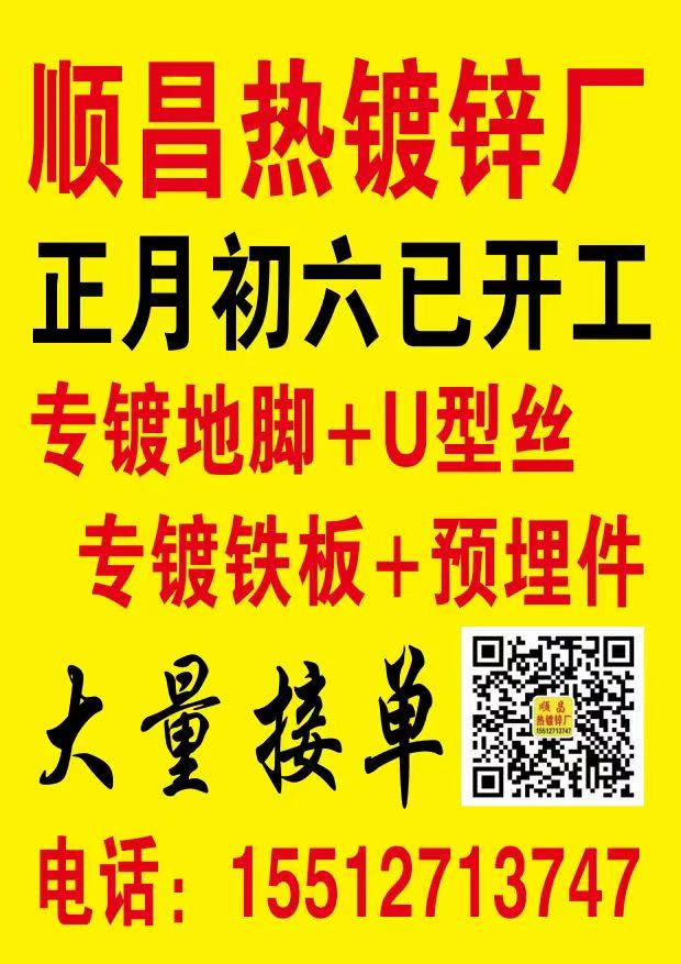 顺昌热镀锌厂 4米锅镀:地脚,U型丝,双头,螺丝,螺母 13米锅镀:大铁板,预埋件,C型钢,异型挂件 一车间:恒创园区内 二车间:邯郸工业园区