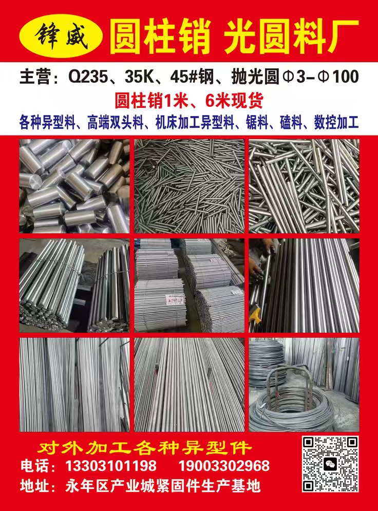 圆柱销光圆料厂,¢3-¢100锯料,磕料。圆柱销1米,3米,6米,大量现货。