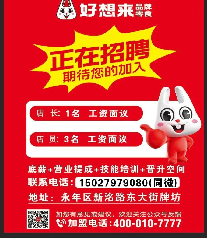 品牌零食店招聘理货员负责固定区域理货补货,工作时间下午3点至11点半,要求,女,年龄20周岁至40周岁,干活麻利服从安排