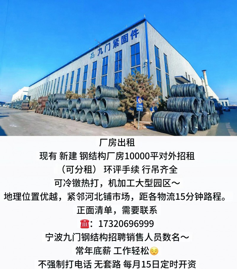 宁波九门钢结构招聘:销售人员数名常年底薪 工作轻松不强制打电话 无套路 每月15日定时开资