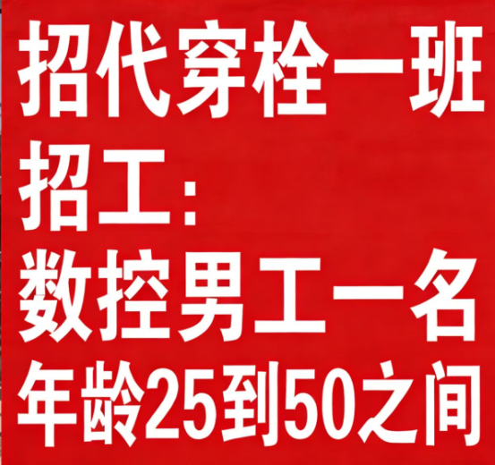 招工:数控男工一名年龄25到50之间