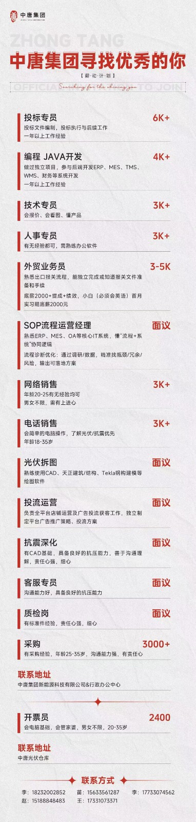 年龄20-25有无经验均可,男女不限,需有上进心会简单的电脑操作,了解光伏/抗震优先通能力好,具备良好的抗压能力,