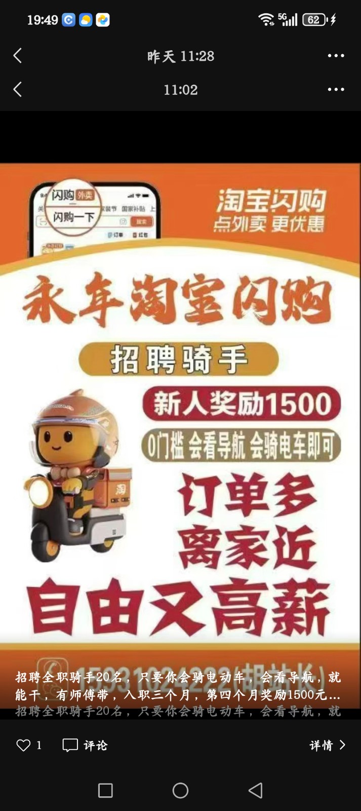 招聘:临时工 招居家宣传员啦!三五分钟完事!做完立马结算!操作简单 日结 现结永年本地正规信息平台,真实有效,有意者加我微信或电话联系