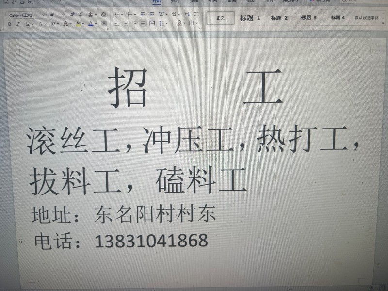招聘职位:滚丝工 滚丝、缩梗、热打、冲床、磕料、