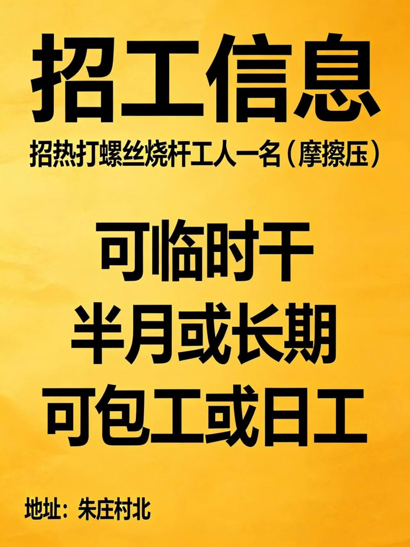招热打螺丝烧杆工人一名(摩擦压)