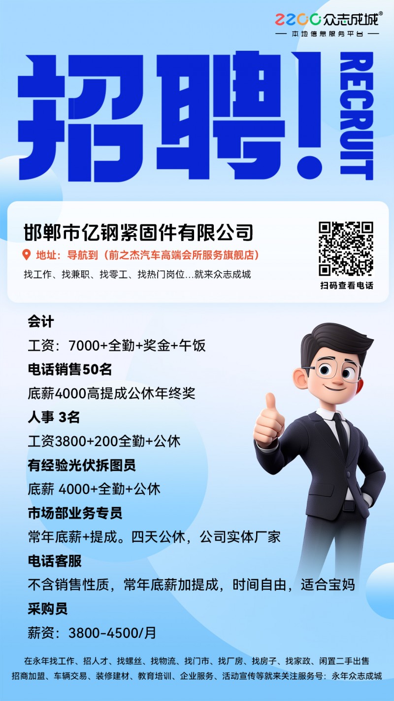 招聘:采购员薪资:3800-4500/月最好干过采购有经验,年龄20-35岁地址:直接导航到(前之杰汽车高端会所服务旗舰店)