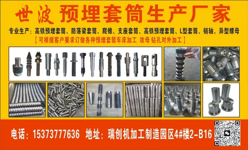 本厂主营:高铁预埋套筒、防落梁套筒、加长套筒,爬锥、车床、钻床、锯床,洗床,对外加工。常年生产异型螺母钻孔攻丝,地址:瑞创机加工制造园区