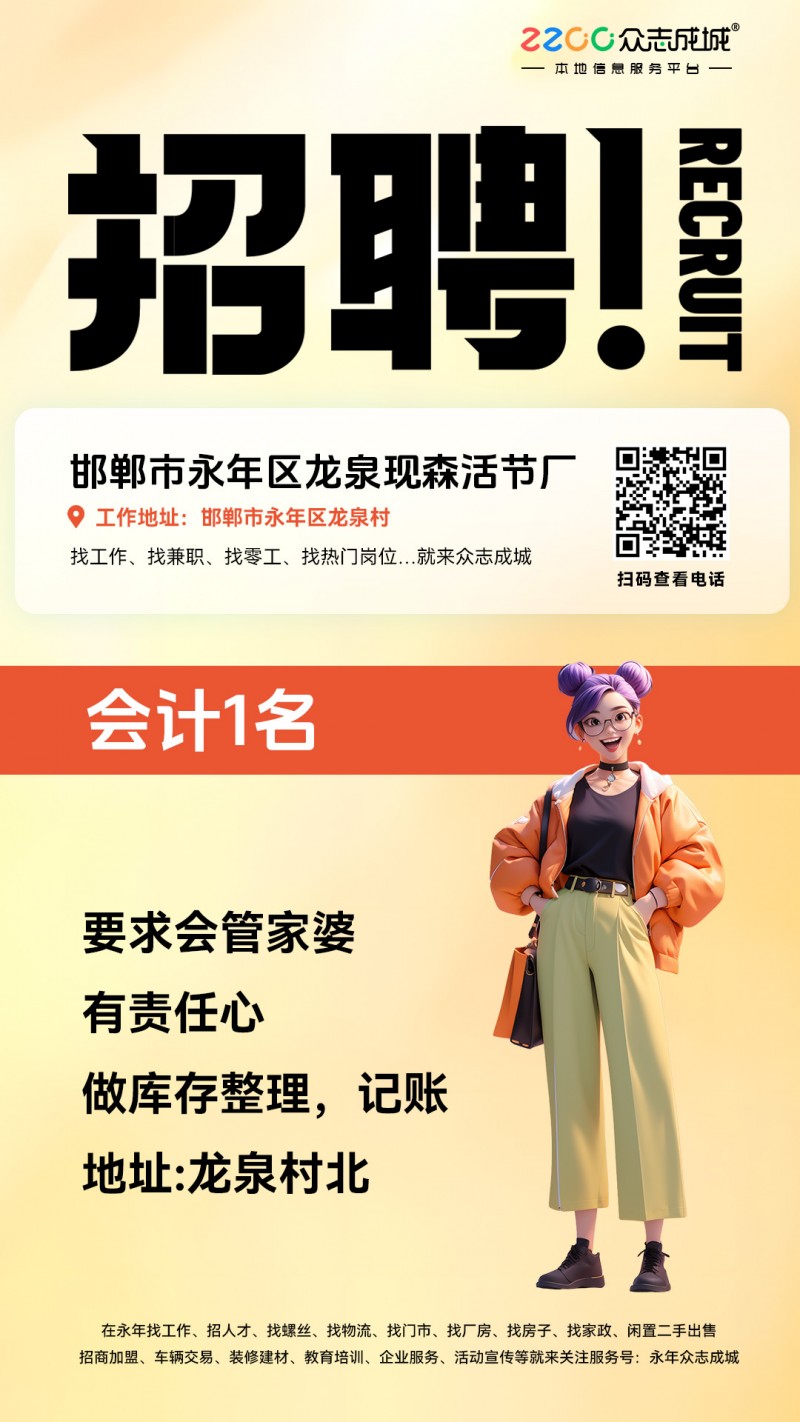 厂招会计1名,25-45岁,会管家婆,有责任心,做库存整理、开票、记账。地址:龙泉村北,