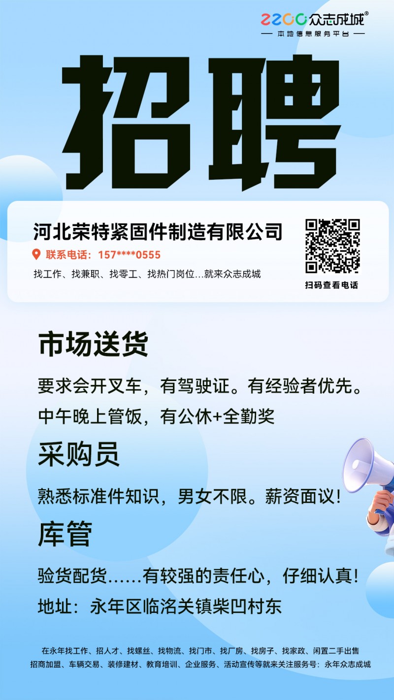 招聘:普工/技工 邢台标准件门市 配货人员一名要求熟悉标准件优先