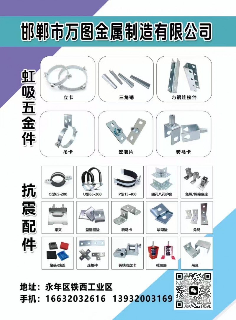 调节器 C型调节器 老虎卡配件 离墙码 10*25T型螺丝 抗震配件 带齿压板 平面压板 护角 p型卡 U型管束 O型管束 重型管束 P型卡胶皮 黑色 白色 蓝色 红色堵头 骑马卡 包角 底座 角码 6号 8号 10号吊耳 虹吸配件 悬吊管卡 可调立卡 型钢连接件 骑卡 销子 安装片 工字钢吊卡 异形冲压件 激光板