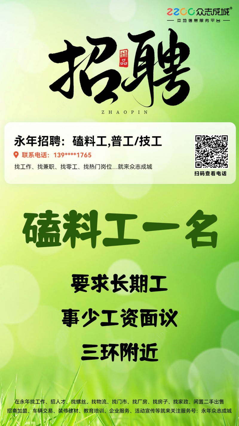 招聘磕料工2名,要求长期,事少, 工资待遇:面议 工作地址:三环附近