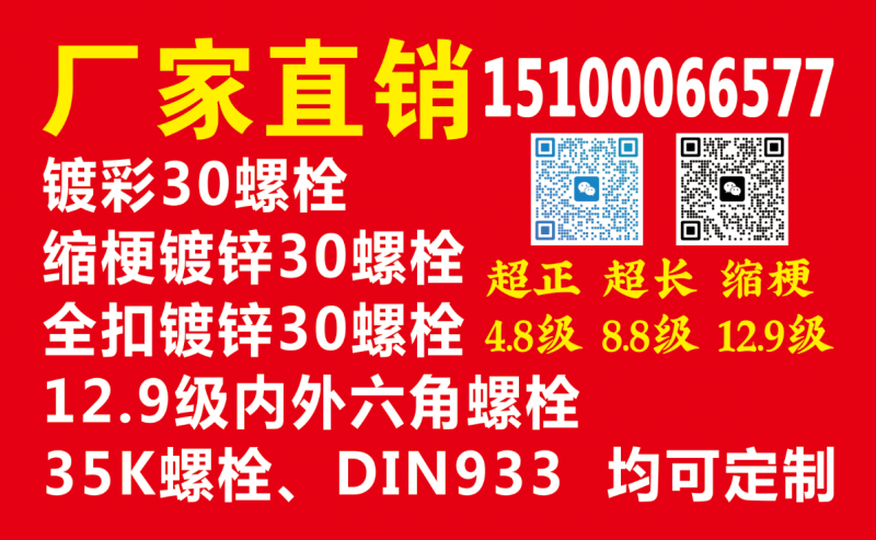 主营:定做4.8-8.8-10.9-12.9级异形螺栓,各种头型内六角,内伍角,内梅花丝及配套扳手,中部成型螺丝,细扣螺丝,英制美制异型螺