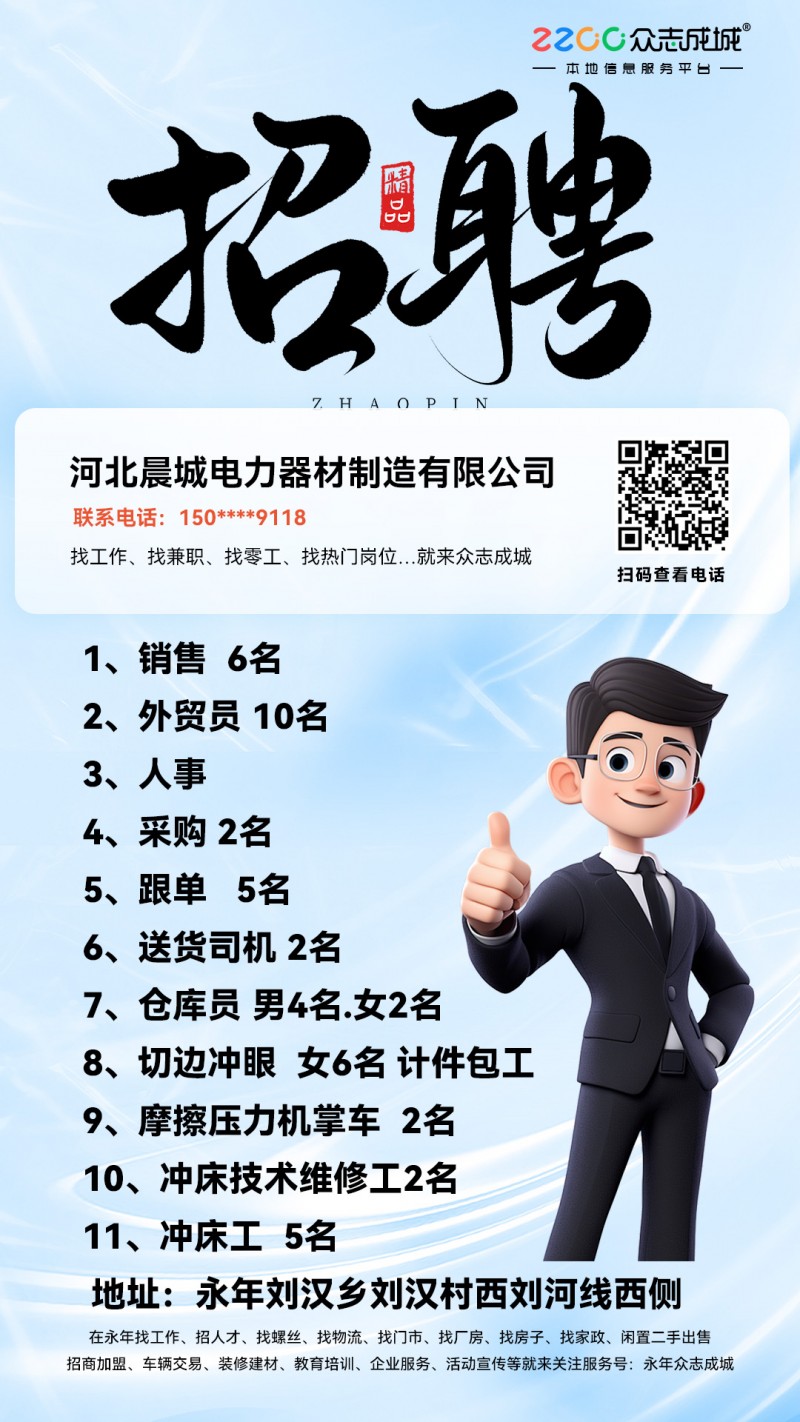 招:人事有经验者优先地址:永年刘汉乡刘汉村西刘河线西侧