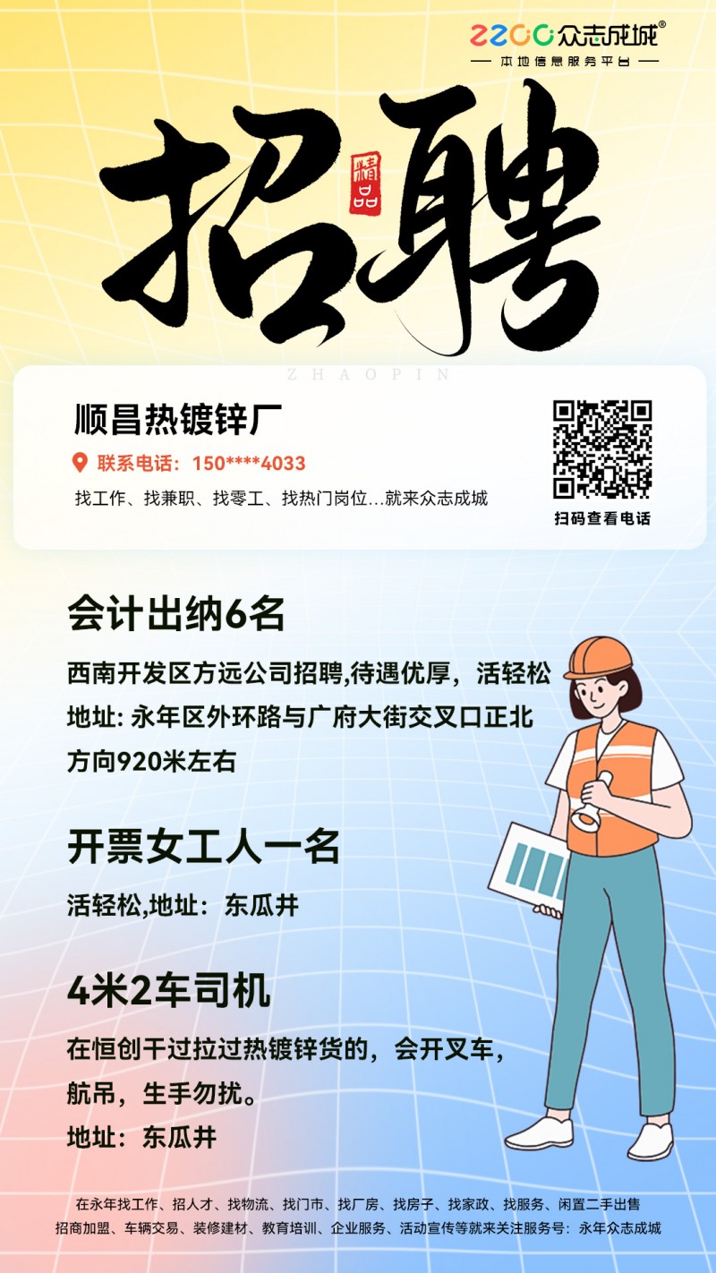 找开4米2车司机在恒创干过拉过热镀锌货的,会开叉车,航吊,生手勿扰。地址:东瓜井